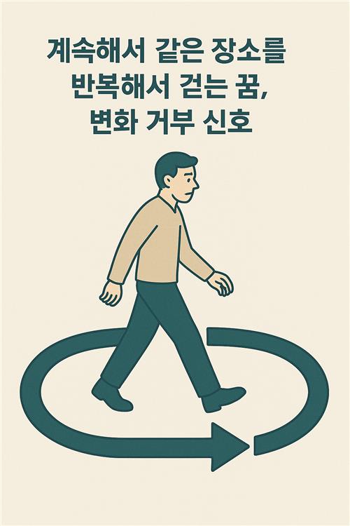 | 같은 장소를 반복해서 걷는 꿈 | 변화를 거부하거나 두려워하는 심리, 미해결 감정 |
