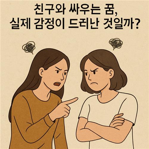 그래서 친구와 싸우는 꿈을 꿨다면, 평소에 내가 그 관계에서 느끼는 스트레스나 불안이 꿈에서 터져 나오는 것일 수 있어요.